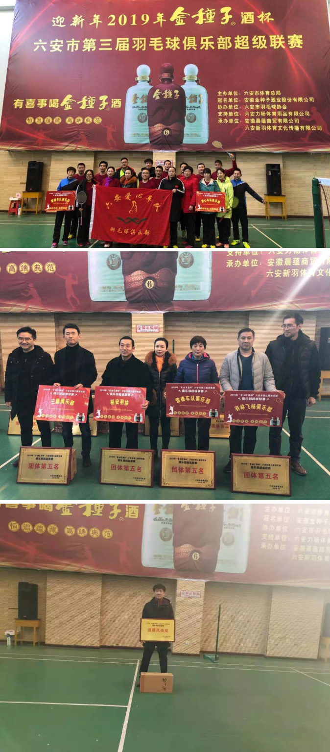 12月15日参加六安市羽协举办的第四届“奥安康会长杯”羽毛球友谊赛